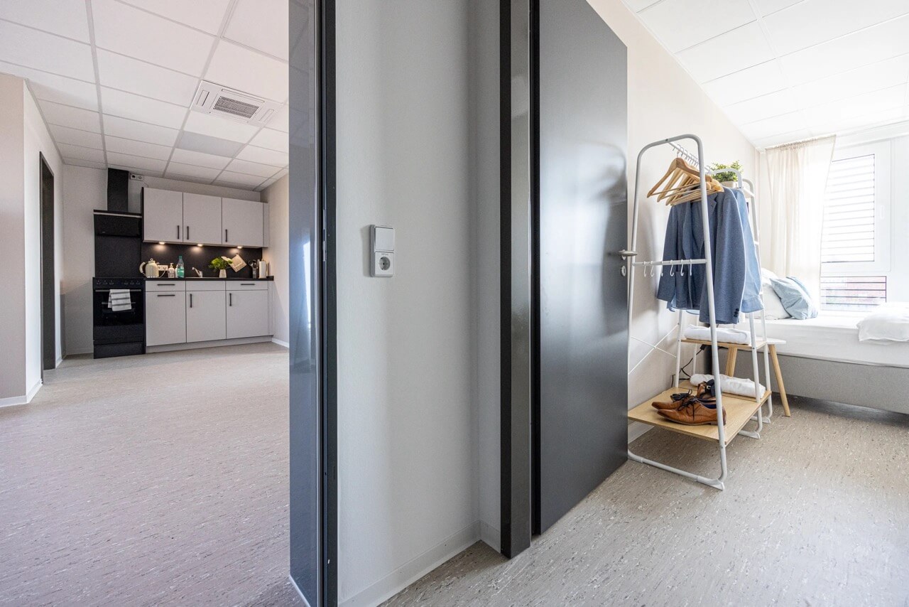 Unsere Apartments in Winsen (Luhe) sind Teil eines modernen Containergebäudes, das urbanes Design mit viel Komfort verbindet. Beim Ankommen entdeckst du nicht nur die besondere Architektur, sondern auch die durchdachten Extras: Direkt am Haus stehen dir eine E-Ladestation sowie Stellplätze für Auto und Fahrrad zur Verfügung.
