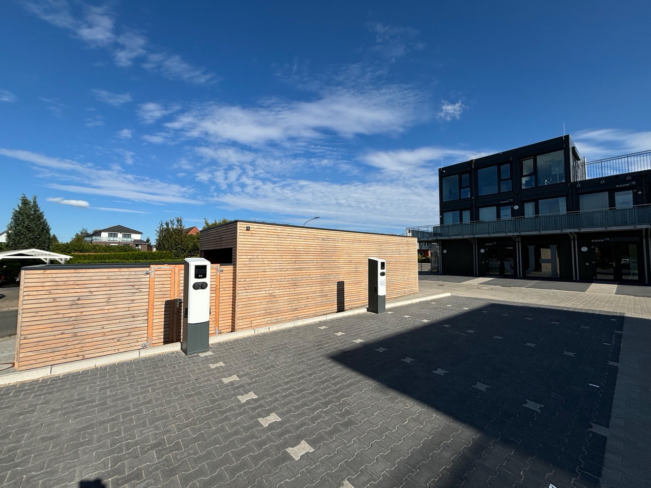Unsere Apartments in Winsen (Luhe) sind Teil eines modernen Containergebäudes, das urbanes Design mit viel Komfort verbindet. Beim Ankommen entdeckst du nicht nur die besondere Architektur, sondern auch die durchdachten Extras: Direkt am Haus stehen dir eine E-Ladestation sowie Stellplätze für Auto und Fahrrad zur Verfügung.