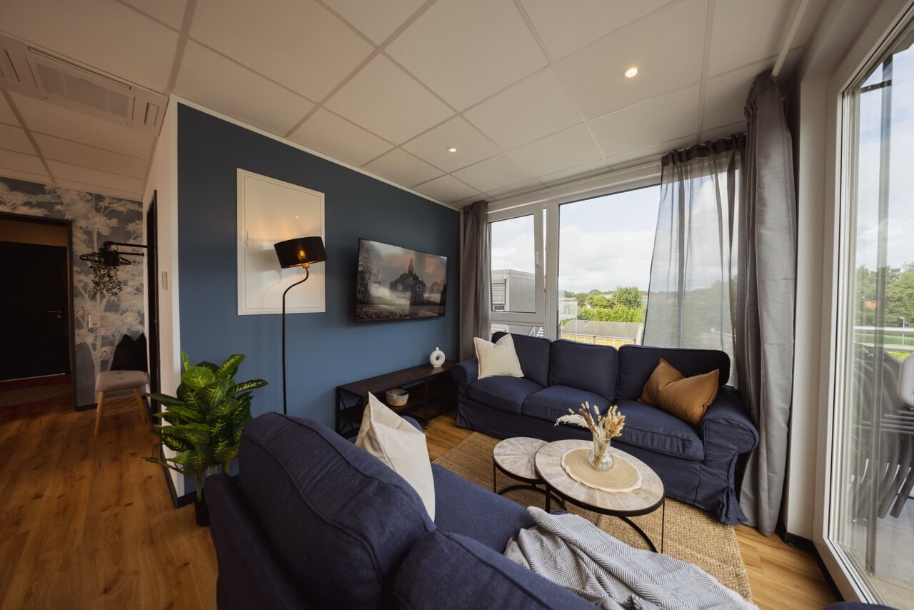 Unsere Apartments in Winsen (Luhe) sind Teil eines modernen Containergebäudes, das urbanes Design mit viel Komfort verbindet. Beim Ankommen entdeckst du nicht nur die besondere Architektur, sondern auch die durchdachten Extras: Direkt am Haus stehen dir eine E-Ladestation sowie Stellplätze für Auto und Fahrrad zur Verfügung.