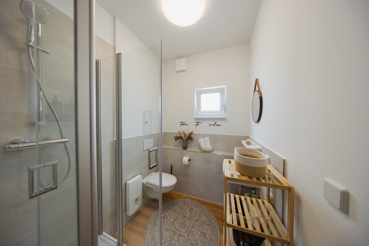 Ergänzt wird das Apartment durch eine Terrasse, einen eigenen Parkplatz, eine E-Ladestation sowie einen Fahrradstellplatz. So bist du flexibel und komfortabel unterwegs, ob du die Umgebung mit dem Rad erkundest oder mit dem Auto Ausflüge in die Region unternimmst.