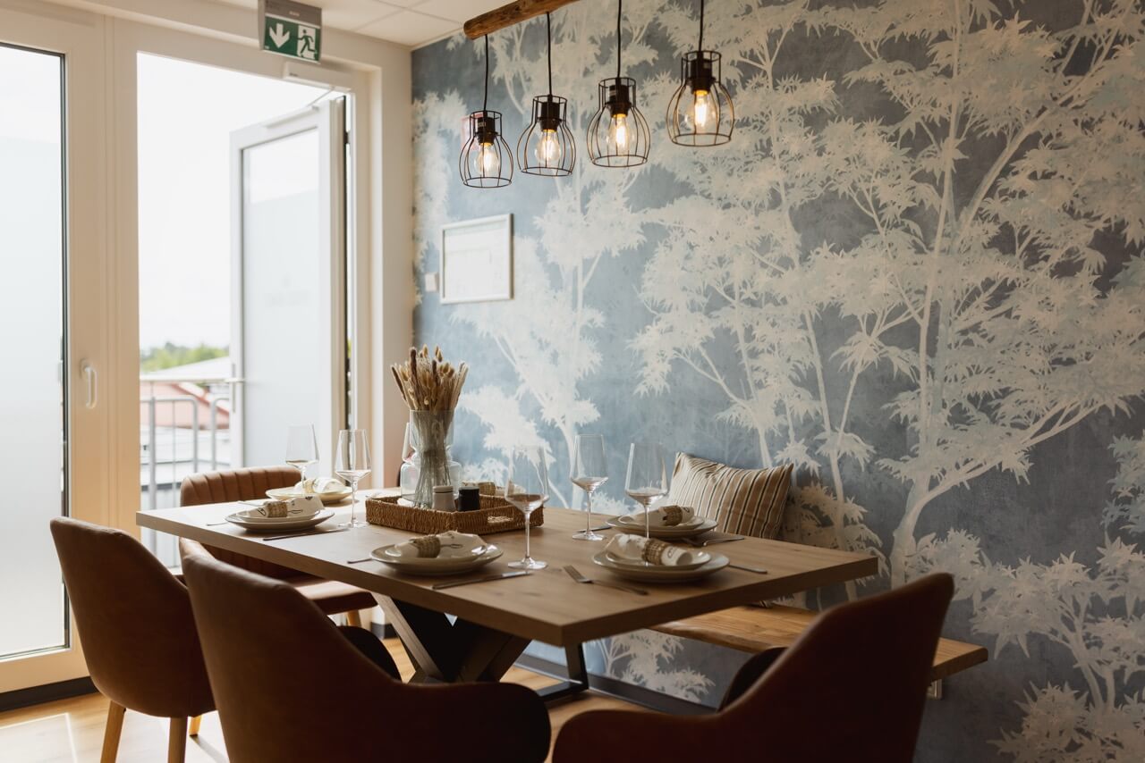 Im Lounge-Bereich warten ein Getränkeautomat und ein Tischkicker – perfekt für eine kleine Pause oder ein Match zwischendurch. Zusätzlich befindet sich auch hier der Waschraum mit Waschmaschine und Trockner, welcher allen Gästen zur Verfügung steht. So siehst du auf einen Blick, dass bei HYGGE HOMES auch der Außen- und Gemeinschaftsbereich für einen entspannten Aufenthalt sorgt.